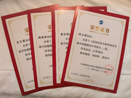 本网讯(通讯员 鲁琰菲)9月23日,第十三届全国高校化学师范生教学能力测试与交流展示活动圆满落幕。我校化学与生命科学学院学生在此次大赛中表现卓越,荣获一等奖3项、二等奖1项。