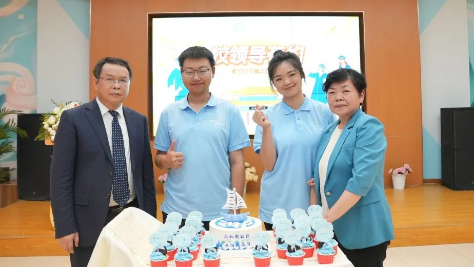 餐后,杨鲜兰、郑军提议与毕业生代表一同切开“启航新征程,绘制新蓝图”定制款蛋糕,希望大家经常关注母校发展,能够常回家看看,学校将以更好的发展,努力成为各位学子的坚强的后盾。