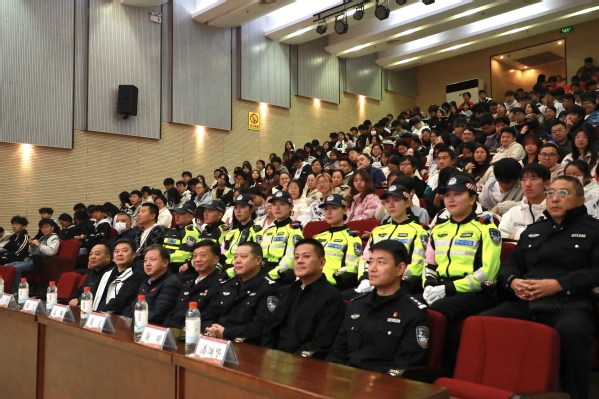 本网讯(通讯员 高阳 学通社见习记者 刘明珠)为进一步增强校园师生对当前突出网络诈骗违法犯罪行为的防范意识和能力,积极营造“平安校园”浓厚氛围,12月2日晚,学校联合东湖高新公安分局在新图书馆二号报告厅开展“平安校园行 防诈护荷包”主题宣传教育活动,邀请了东湖高新公安分局领导、同心派出所民警,刑侦大队、区消防大队、分局交通大队相关专家作专题宣讲,校党委副书记胡兴出席活动。