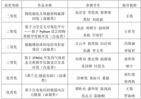 本网讯(通讯员 王筠)近日,第十一届全国大学生物理实验竞赛(创新)决赛在中南大学落下帷幕。我校参赛队斩获6项奖项,学校获评优秀组织奖。