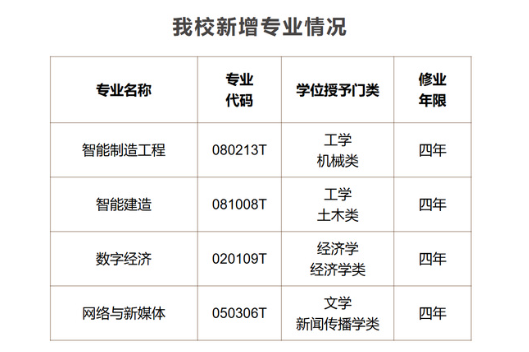 学校新增4个本科专业